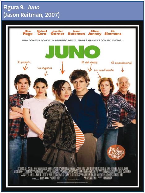 Ficha protagonista: Nombre: Juno MacGuff (Ellen Page). Edad: 16 años. Lugar: Minessota (Estados Unidos), años 80. Película: Juno (Jason Retiman, 2007). Estados Unidos (Fig. 9).