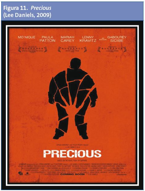 Ficha protagonista: Nombre: Claireece "Precious" Jones (Gabourey Sidibe). Edad: 16 años. Lugar: Harlem, Nueva York (Estados Unidos), años 2000. Película: Precious (Lee Daniels, 2009). Estados Unidos (Fig. 11).