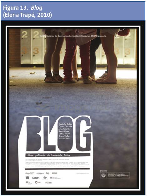 Ficha protagonistas: Nombres: Marta (Candela Antón), Paula (Irene Trullén), Bea (Anna Castillo), Sandra (Sara Gómez), María (Lola Errando), Laura (Lidia Torrent), Aúrea (Alada Vila), Julia, Raquel, Alicia, Ruth, Claudia, Mónica y Noé. Edad: 15 años. Lugar: Barcelona (España), años 2000. Película: Blog (Elena Trapé, 2010) (Fig. 13). España.