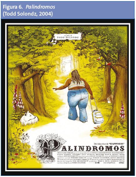 - Palíndromos causó sorpresa entre muchos expertos y críticos debido a su temática sobre el aborto, el abuso de menores y los niños con defectos congénitos. Centrada en la historia de Aviva (“tu nombre es un palíndromo”), una niña de 13 años que quiere tener hijos para tener a alguien a quien amar y hace todo lo que puede para que esto ocurra y casi lo consigue. Pero sus “sensatos” padres intentan evitarlo: las escenas en que los padres obligan a su hija a abortar son una bofetada al espectador (“no es un bebé, es como un tumor”, le dicen), cuyo colofón es la noticia que reciben los padres al comunicarles que el aborto se ha complicado y ha sido preciso practicar una histerectomía de urgencia a su hija. Así que Aviva decide escaparse, empeñada en quedarse embarazada de una manera o de otra.