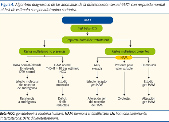 Anomalías de la diferenciación sexual 46XY con respuesta normal de testosterona al test de estímulo con gonadotropina humana (beta-HCG) (figura 4)