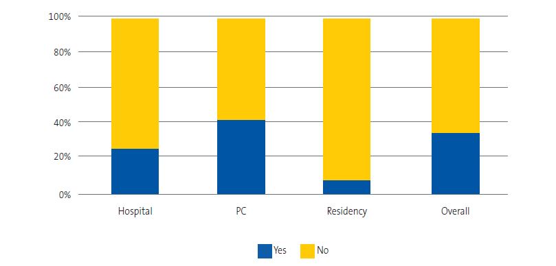 | Hospital | Primary care | Residency | Total | χ2 (4) = 14.4 | |