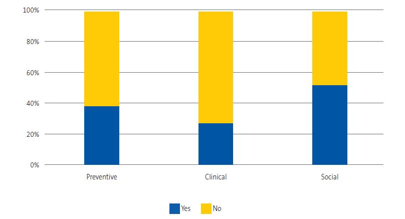To assess whether there was any form of association between the reported vocation and the implementation of reading promotion activities, we carried out a new analysis that showed that the proportion who carried these activities was greatest in the subset that reported a social paediatrics vocation (52.7% compared to 38.2% of those who reported a preventive vocation and 27.3% among those who reported a clinical vocation), (χ2(2) = 13.11, p <0.001) (Figure 6).