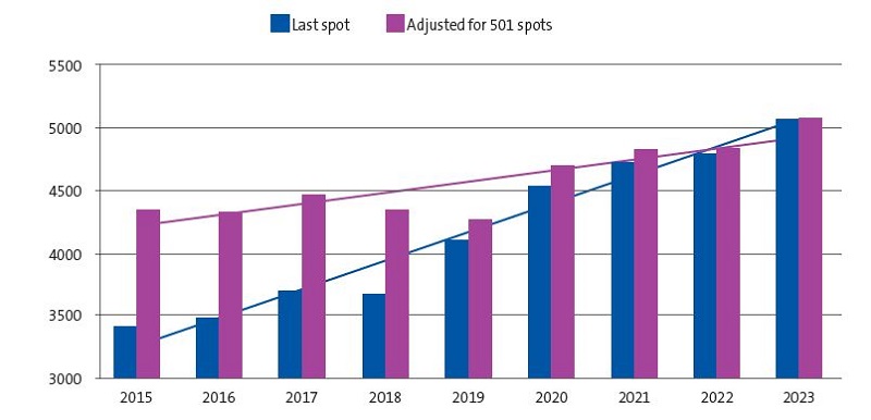 | Figure 2. Trend in the allocation of the last spot if the number of spots had not changed throughout the 2015-2023 period |