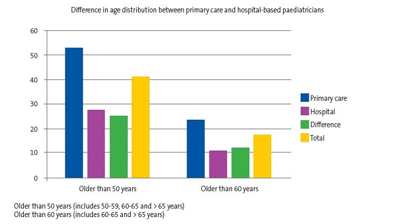 | Figure 4. Percentage of paediatricians aged more than 50 years and aged more than 60 years in primary care vs. hospital setting |