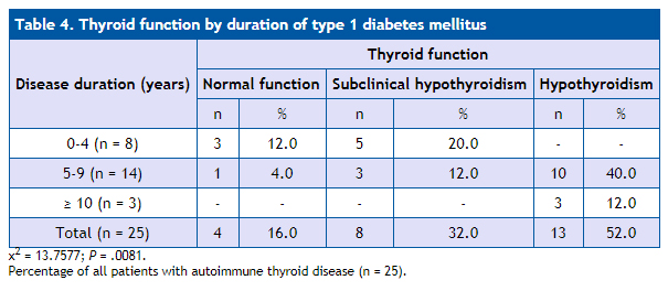 | Table 4. Thyroid function by duration of type 1 diabetes mellitus | ||||||