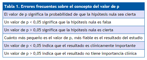 | Tabla 1. Errores frecuentes sobre el concepto del valor de p |