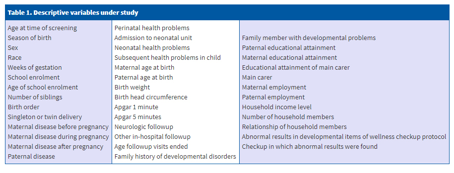 Conclusions: we did not significant differences in the prevalence of developmental delays between the two groups. Delays had not been suspected before testing in more than 50% of the children in whom they were identified, which evinces the need to include psychomotor delay screening protocols in the primary care child wellness checkup programme for the early diagnosis of these problems.