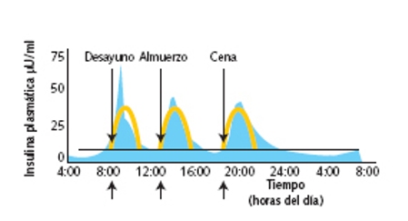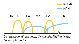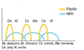Cuando el tiempo entre comidas es inferior a 6 horas puede ser suficiente la administración de insulina regular. Por ejemplo, entre el desayuno y la comida en el niño pequeño.