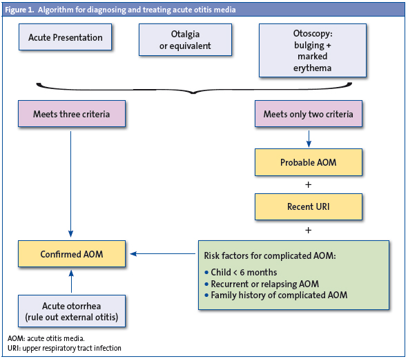 Según el consenso sobre otitis media de la American Academy of Pediatrics/American Academy of Family Physicians de 2004, el diagnóstico debe basarse en tres criterios25:
