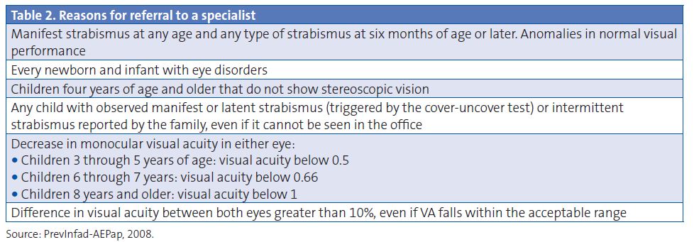 Reference of this article: Martín Martín R, Bilbao Sustacha JA, Collado Cucò A. Vision screening in Primary Care: how it is performed? Rev Pediatr Aten Primaria. 2013;15:221-7.