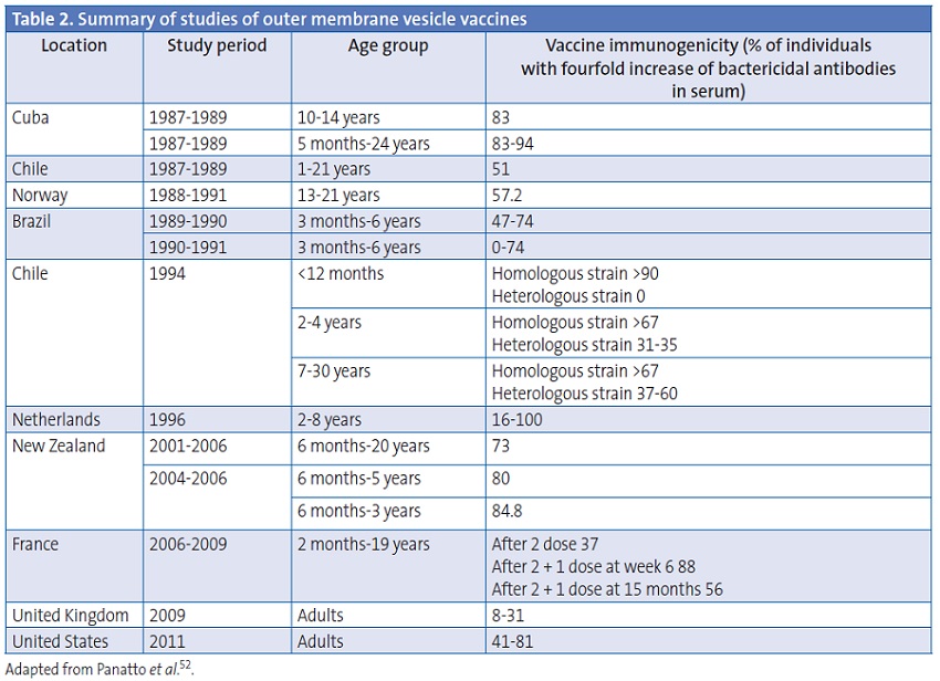 Table 2 shows a summary of the studies done with OMV vaccines.52