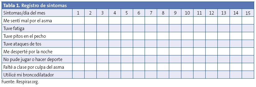 Es muy importante en los controles revisar en el diario de síntomas, junto con el paciente o la familia, que ha empleado los medicamentos de alivio, cuando se han presentado los síntomas, y la interrupción de los medicamentos, cuando han desaparecido.