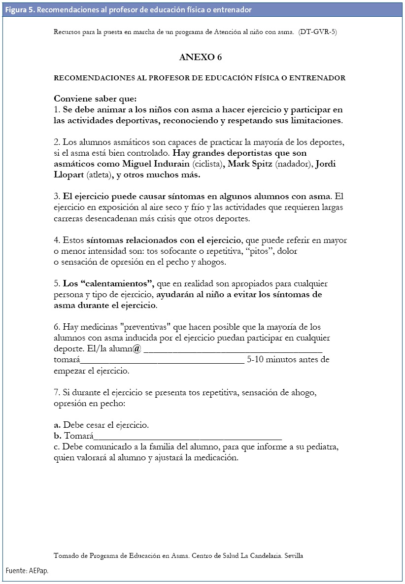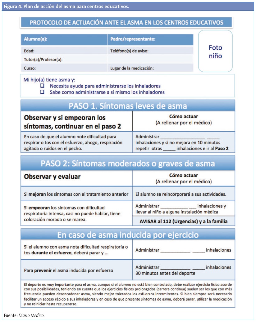 El manejo de un niño desde que acude por primera vez a la consulta con síntomas y/o signos sospechosos de asma, hasta que este niño y su familia son capaces de utilizar correctamente un plan de acción personalizado por escrito, es la razón del desarrollo de los programas de atención al niño/adolescente con asma que existen en varias comunidades (www.respirar.org/sanitaria/planes.htm).