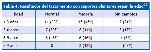 | Tabla 4. Resultados del tratamiento con soportes plantares según la edad27 | |||