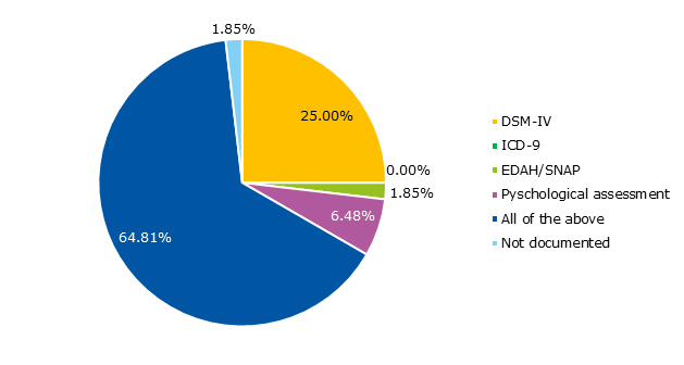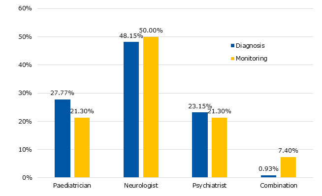 The data regarding the specialists that diagnosed and managed the disorder are shown in Figure 3. Figure 4 summarises the data on the criteria used to diagnose ADHD.